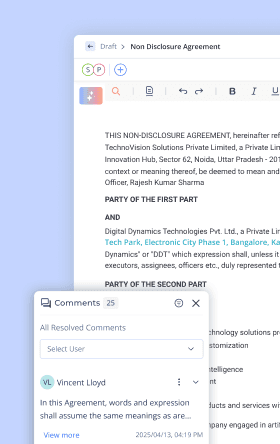 Create contracts, agreements, and legally complaint documents with AI that understands law inside out. NYAI learns your organization's drafting style while ensuring every clause meets legal standards. Built-in risk flagging catches issues before they become problems. Collaborative workflows keep teams aligned. Approval chains ensure nothing goes out without proper review.