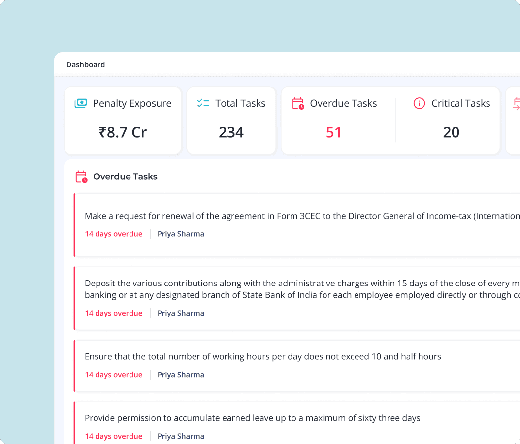 Centralised compliance dashboard