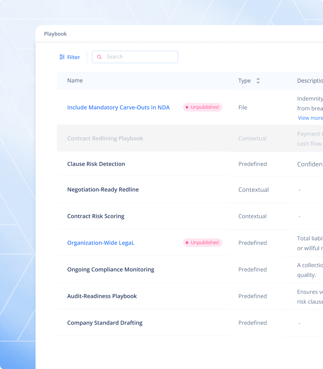 NYAI Playbooks help legal teams handle recurring legal scenarios with clarity, consistency, and accountability — without reducing complex decisions to rigid rules.