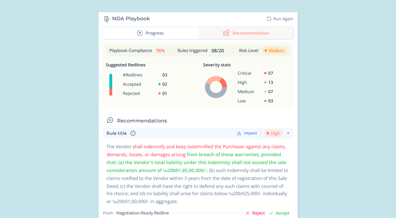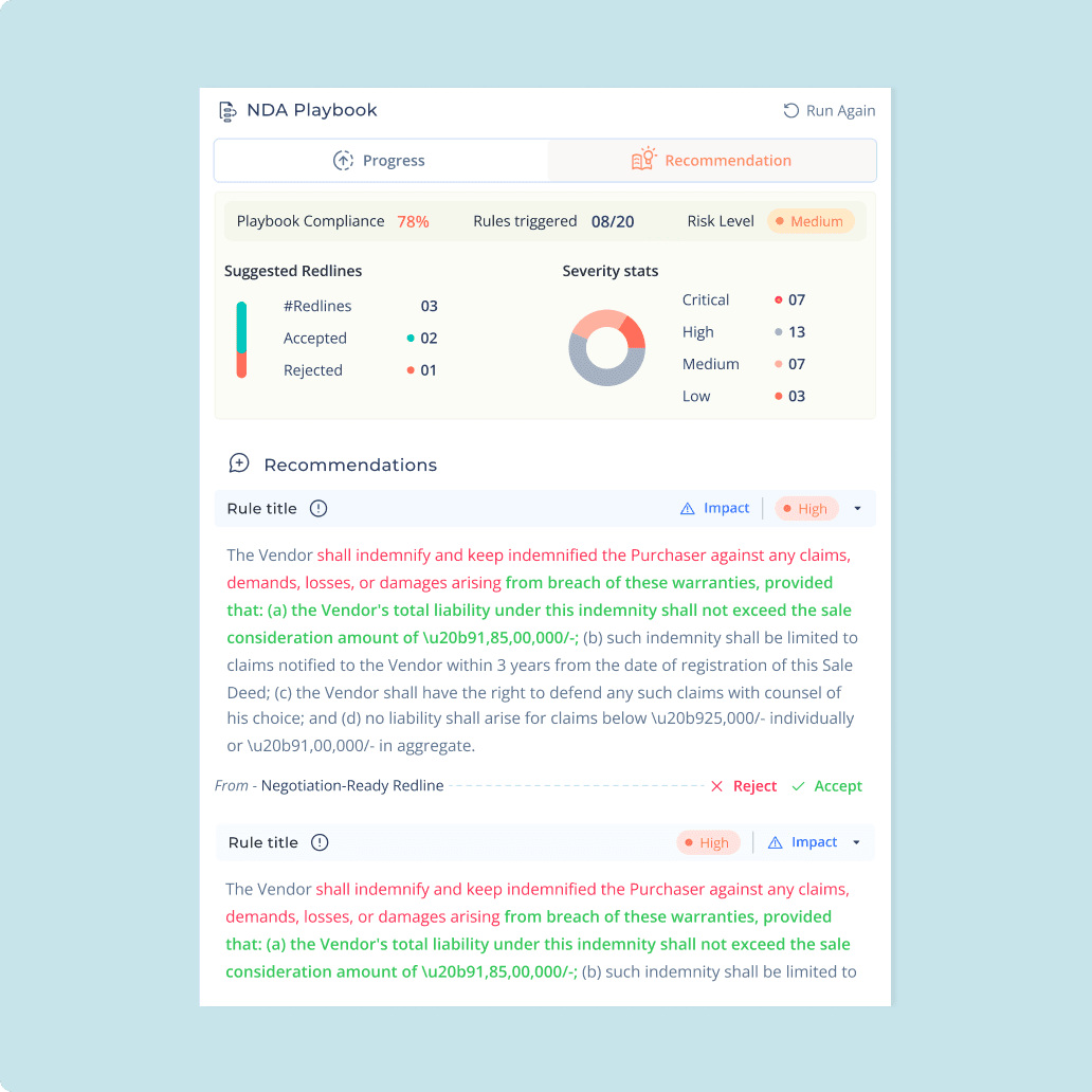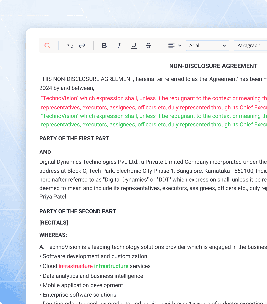 NYAI flags outdated clauses, inconsistent language, and risky changes using context-aware analysis—not just manual comparison.