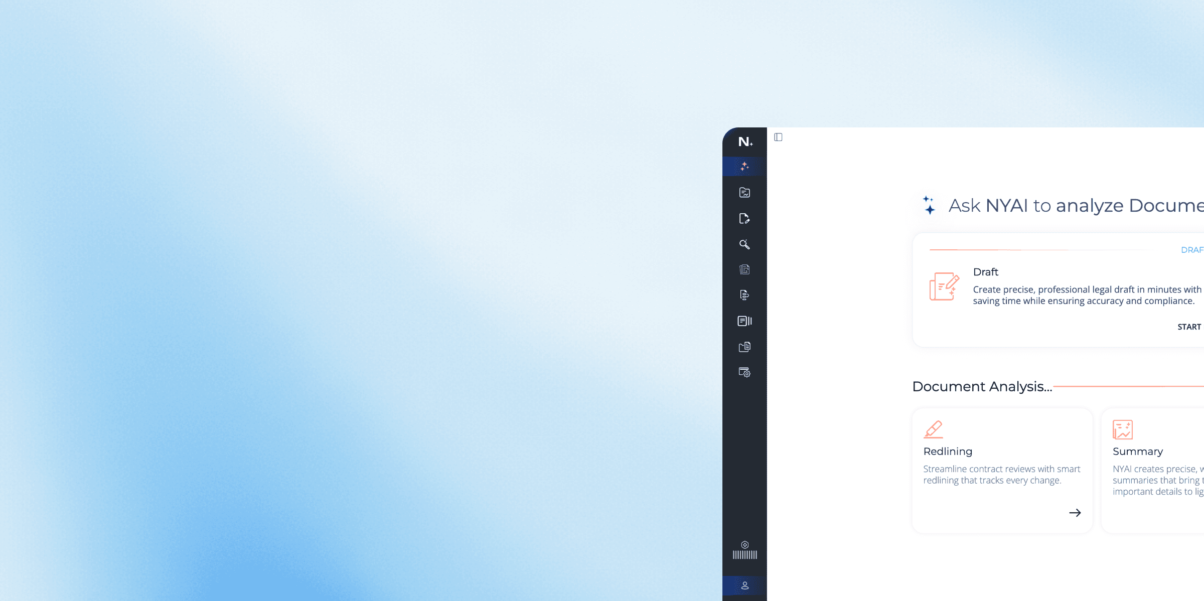 All legal data is handled with strict access controls and confidentiality safeguards. Your data remains yours - NYAI does not repurpose client data for unrelated use.