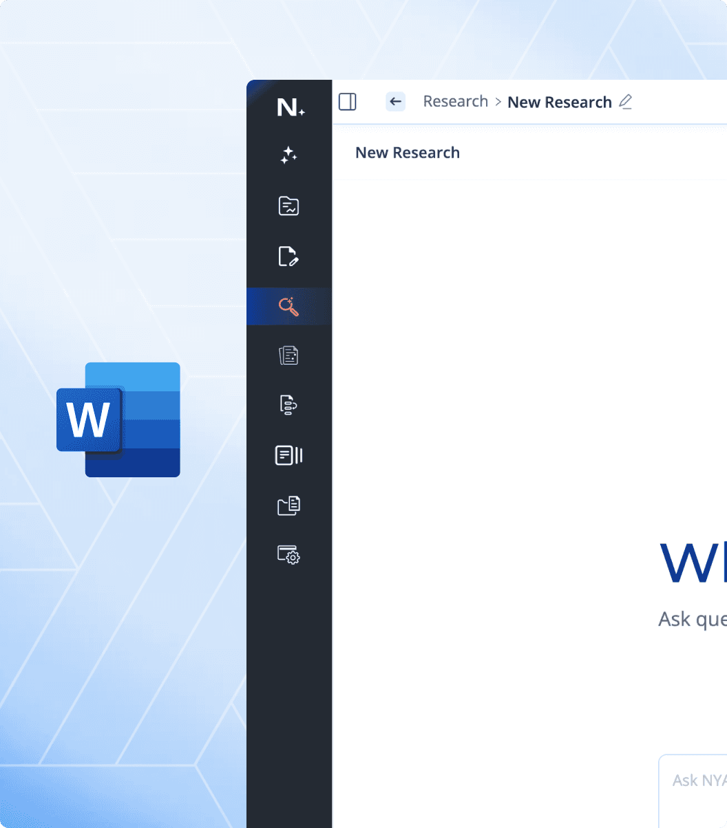 Access NYAI from Word’s side panel for contextual insights, suggestions, and summaries without leaving your workflow.